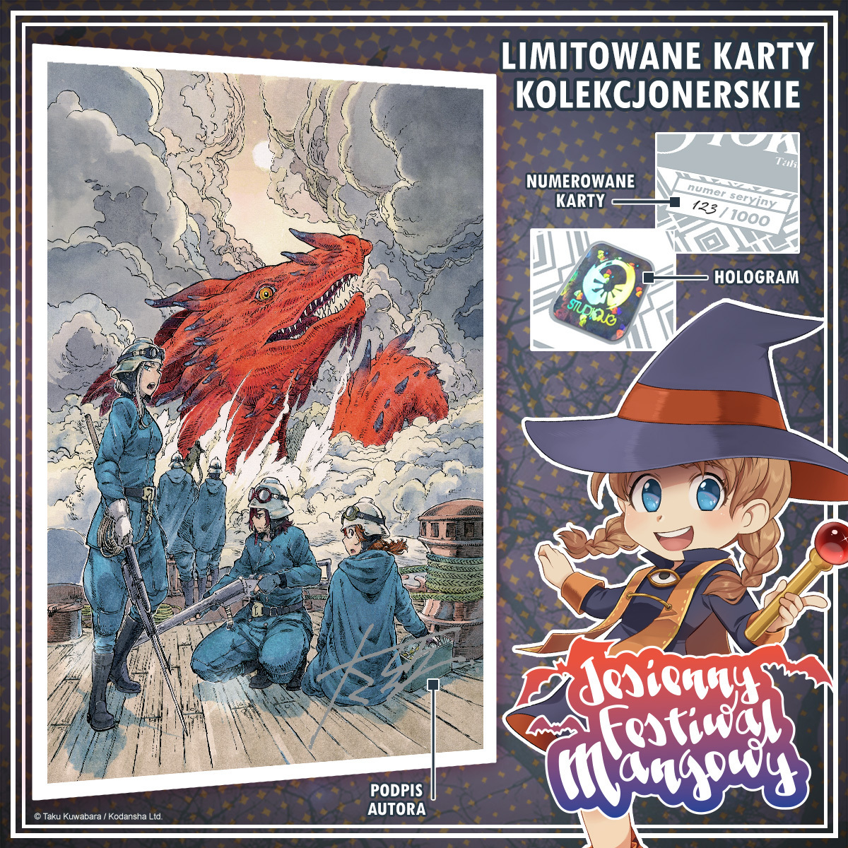 Po sukcesie letniej edycji, a także entuzjastycznym odzewie ze strony czytelników, zdecydowaliśmy się powtórzyć to przedsięwzięcie w uproszczonej, bardziej przystępnej formie. W związku z tym 23 października premierę i przedpremierę będzie miało aż 7 naszych jesiennych nowości! Ponownie, oprócz indywidualnych dodatków dla prenumeratorów, będziecie mogli uzbierać aż 7 dużych, limitowanych kart kolekcjonerskich z każdej serii! Aby je zdobyć, należy wykupić minimum trzy prenumeraty na nowości JFM, wliczające pierwsze tomy (np. Beastars #1 + Sposób na pięcioraczki #1-5 + Mąż mojego brata #1). Prenumeraty na wszystkie 7 serii będą dostępne tylko do 11 października (uwaga: promocja związana z kartami kolekcjonerskimi nie będzie obowiązywać w sklepach stacjonarnych!). Już wkrótce będziemy też informować Was o innych atrakcjach związanych z wydarzeniem i bonusach, jakie będziecie mogli upolować w związku z festiwalem. Zachęcamy do polubienia wydarzenia na Facebooku i śledzenia naszych mediów.